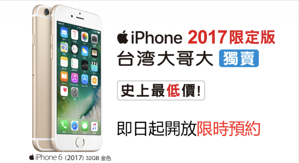 iPhone 6 с 32 ГБ памяти продаётся на Тайване у оператора Taiwan Mobile. Устройство предоставляется покупателю бесплатно при условии заключения 30-месячного контракте на оплату связи по тарифу примерно 45 долларов в месяц. В итоге за смартфон и услуги связи придётся выплатить 1350 долларов (78 600 рублей). Продажи начнутся 10 марта.