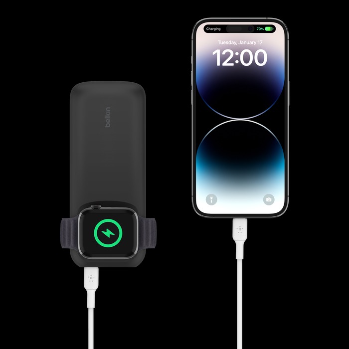 Одновременно по проводу к BoostCharge Pro подключается iPhone. Кабель уже входит в комплект и также передает максимальную мощность внешнего аккумулятора — 20 Вт. Кроме того есть функция сквозной зарядки, что позволяет заряжать и смартфон, и пауэрбанк. Минусом может стать разве что скромная ёмкость, всего 10000 мА·ч.