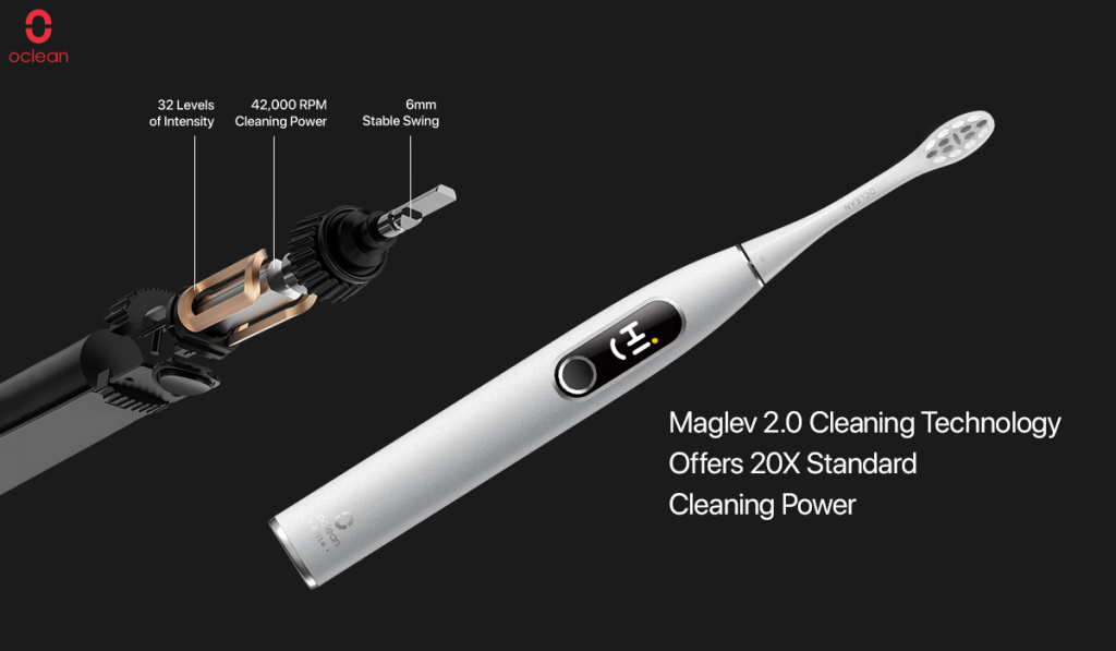 Инженеры Oclean также реализовали в щётке X Pro Elite технологию, которая получила называние maglev 2.0 wide swing cleaning. Благодаря ей, увеличивается площадь соприкосновения щетины с зубами, чистить зубы становится приятнее, и удаляется гораздо больше зубного налёта, чем при использовании других зубных щёток.