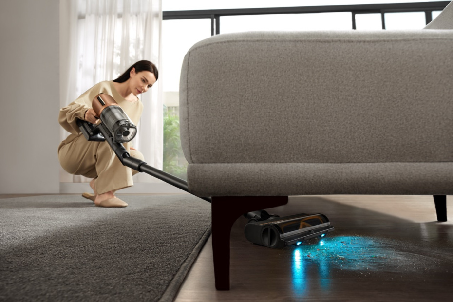 - Две основные щетки с подсветкой: помогают увидеть пыль в темных углах, которую обычно пропускают.