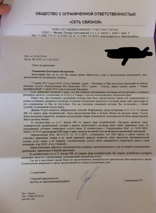 В аналогичных ситуациях магазины обычно отказывают покупателям в возврате средств за приобретённые товары и услуги. Они ссылаются на то, что продажа осуществлялась в соответствии с законом, а покупатель добровольно подписал документы и согласился со всеми предложенными условиями. Единственное, от чего получится отказаться, так это от страховки по кредиту (и то нужно успеть обратиться в банк в течение 5 дней с момента оформления документов).
