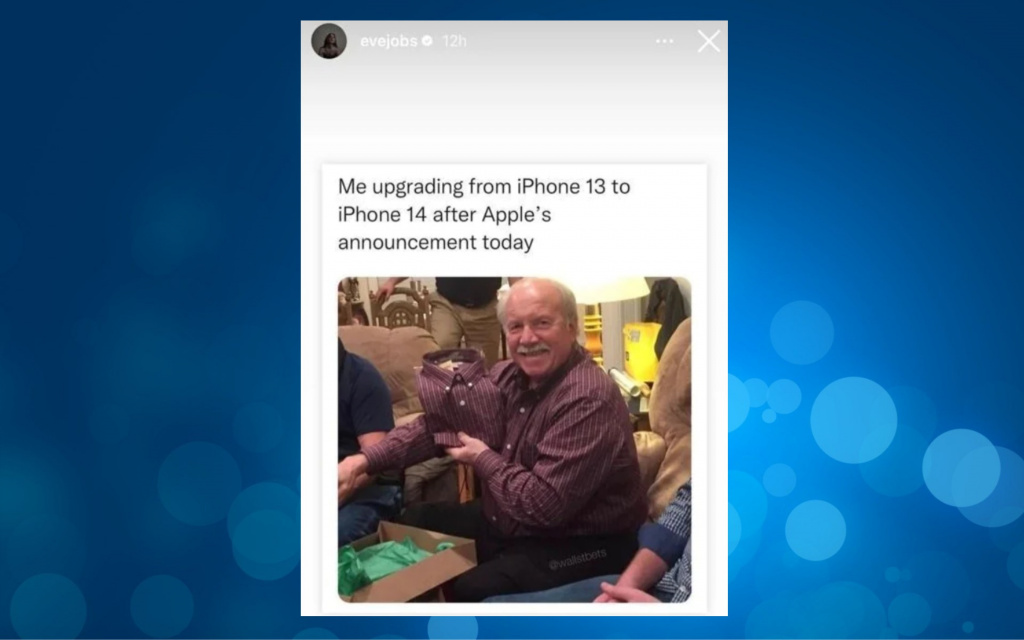 Ева Джобс запостила мем, в котором высмеивает новый iPhone 14 и его покупателей.