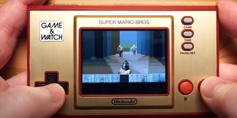 На YouTube появилось видео, автор которого демонстрирует запуск игры Doom на ретро-консоли Nintendo Game & Watch. Эта консоль ещё более древняя, чем Doom — она выпускалась с начала 80-х годов и, конечно же, совершенно не приспособлена для компьютерных игр.