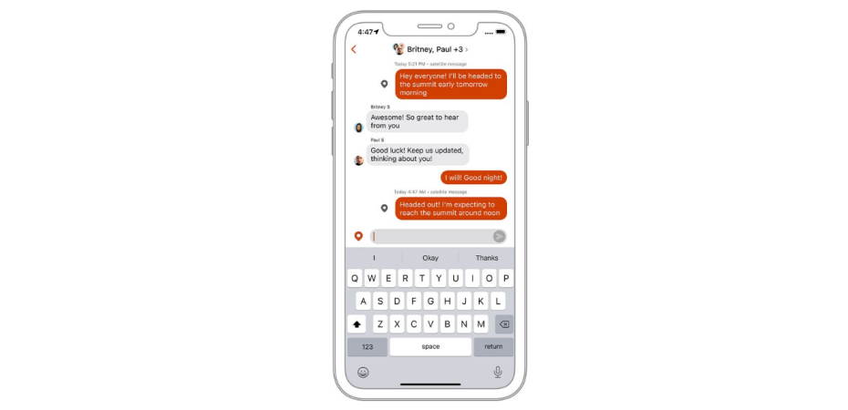 inReach Messenger подключается к смартфону через Bluetooth. Когда интернет-соединение доступно, сообщения отправляются как в обычном мессенджере по протоколу Iridium. За отправку спутниковых сообщений необходимо платить по модели подписки: до 10 штук — 15 долларов в месяц, до 40 штук — 35 долларов в месяц, безлимит — 65 долларов в месяц. inReach Messenger также может работать в режиме спасения и отправлять координаты пользователя избранным контактам и в экстренные службы. Аккумулятора хватает на 14 дней работы.