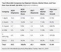 В 2017 году лидером была компания Samsung (8 млн), второе место было у Apple (4,7 млн), а Huawei занимала третью позицию (3,1 млн продаж).
