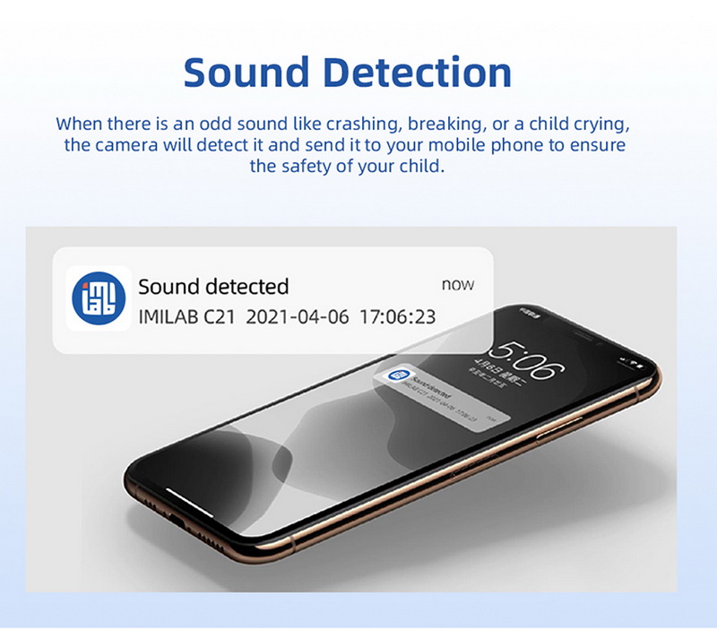 В камеру IMILAB C21 встроен микрофон, благодаря чему она может оповещать пользователя о звуках, которые «слышит» — например, плач ребёнка или разбитое стекло. В неё установлен высокочувствительный фотосенсор, обеспечивающий захват изображения с высоким качеством как в светлое, так и тёмное время. В полной темноте съёмка ведётся с использованием четырёх ИК-датчиков, причём даже в таких условиях качество остаётся очень высоким.