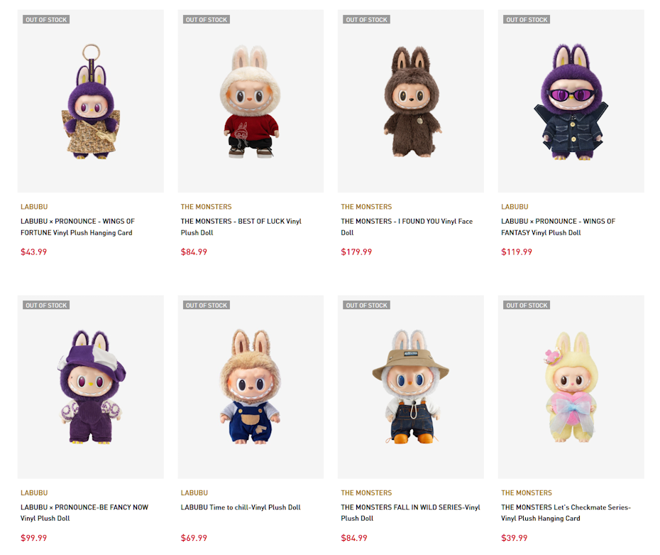 Pop Mart продаёт не только игрушки Лабубу, но и другие товары с изображением этой героини: шапки, варежки, шары, серьги, подвески сумки, наушники, брелоки, чехлы и беспроводные зарядки для смартфонов, магниты для холодильников.