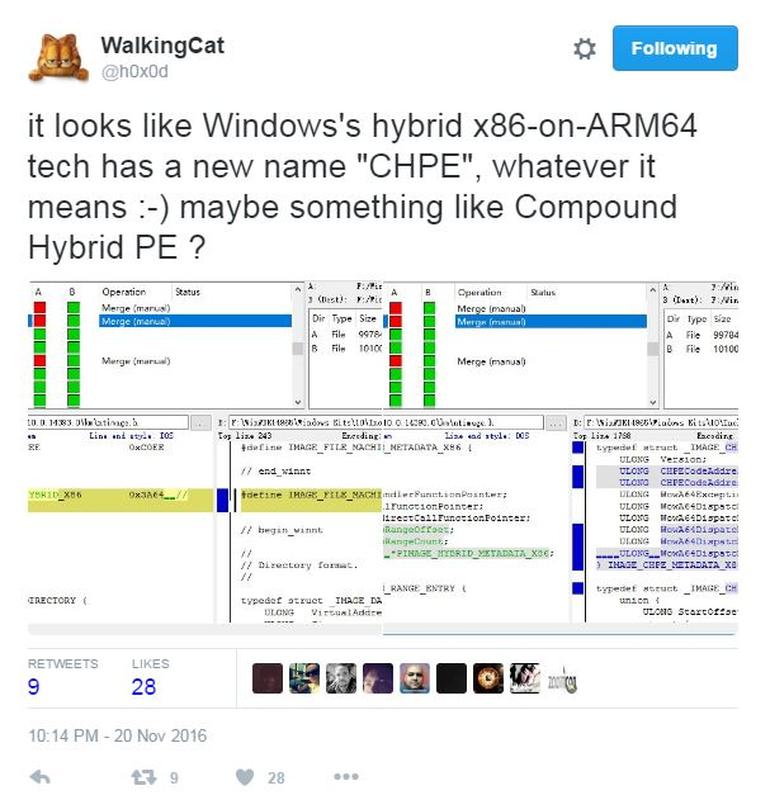 Предположительно, Microsoft работает над этим проектом совместно с компанией HP. Косвенное свидетельство этому обнаружил твиттер-аккаунт WalkingCat. В коде Windows’s hybrid x86-on-ARM64 он нашёл сокращение CHPE. Буква C может означать Cobalt, HP — имя одноимённой компании, а E — Emulator.