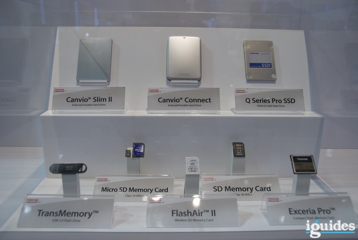 Помимо этого, на стенде Toshiba было много полезной мелочевки: переносные жесткие диски, твердотельные накопители, USB-флешки и карты памяти, в том числе с поддержкой Wi-Fi.
