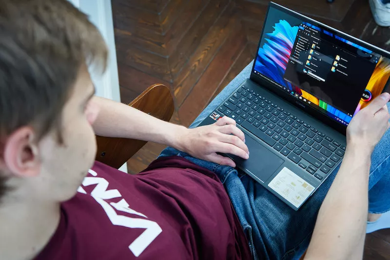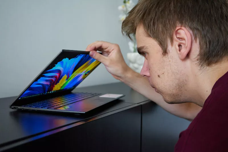 Об этом позаботились инженеры ASUS. К нам на обзор попал ZenBook 13 OLED (UM325). Это ультрабук именно для таких задач, а разработан он с учетом на удобство корпуса.