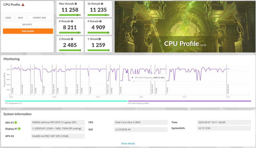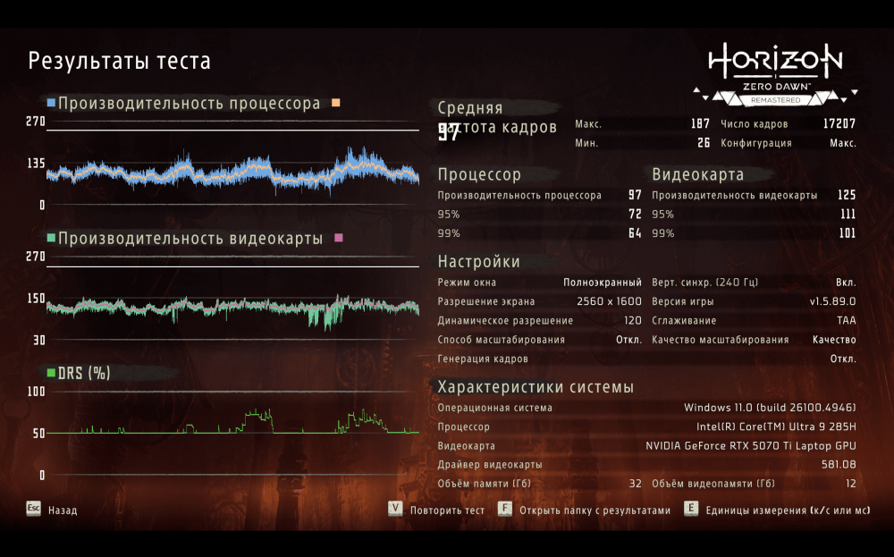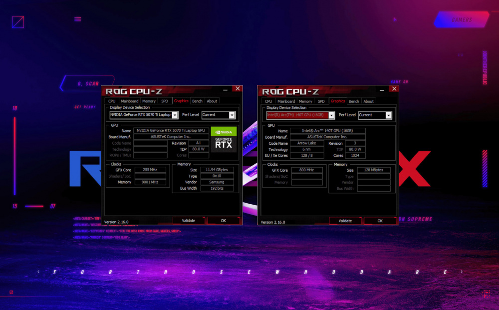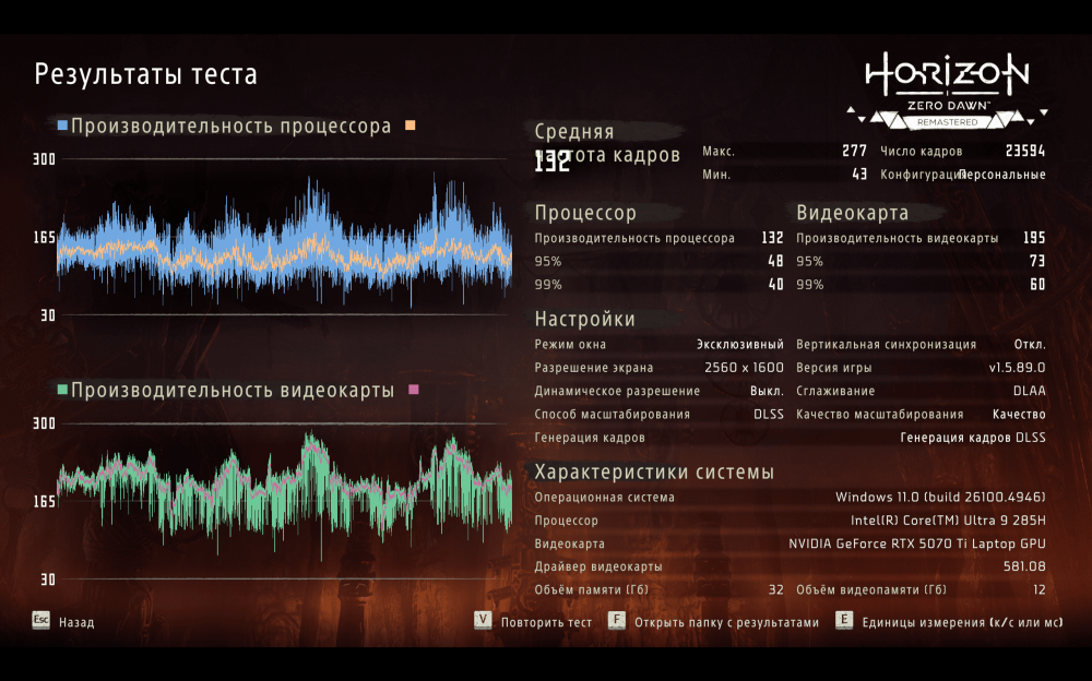 Zephyrus G16 доступен разных конфигурациях. Мне на тест досталась версия с мобильной видеокартой RTX 5070 Ti на 12 ГБ в связке с 32 ГБ «оперативки» и процессором Intel Core Ultra 9 285H.