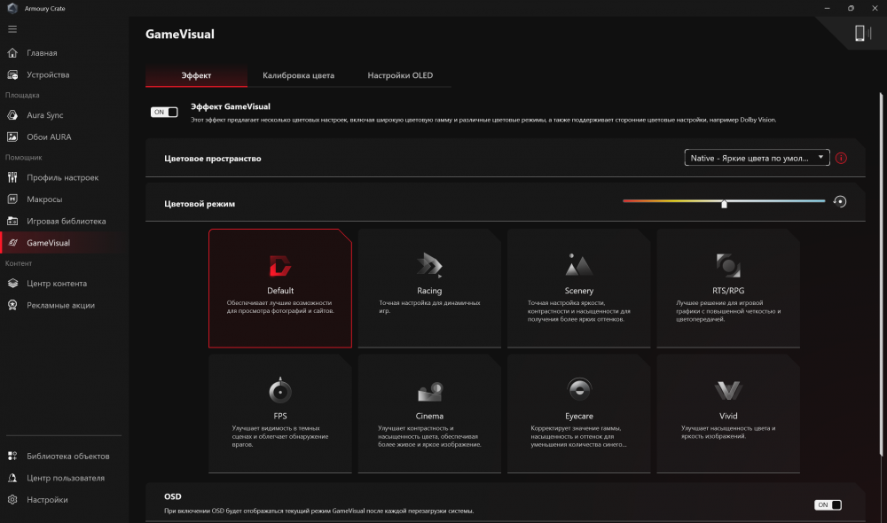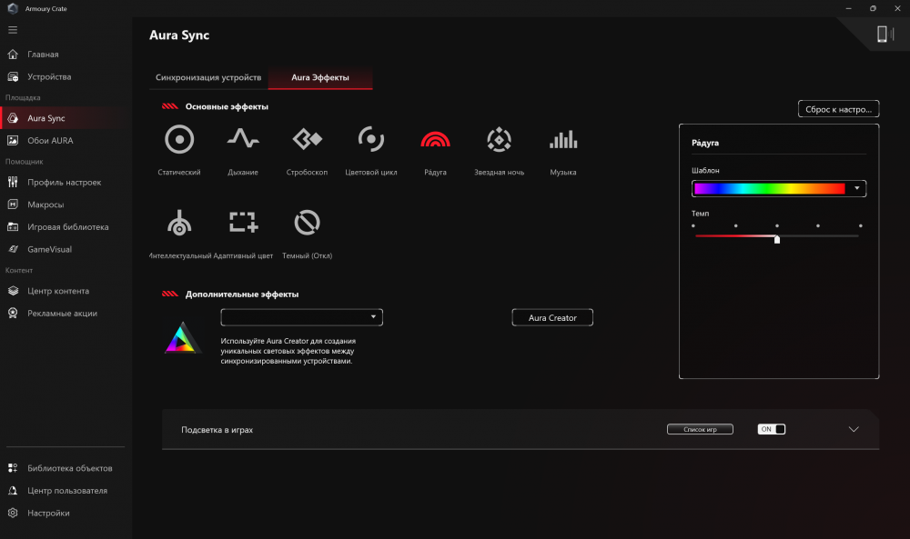 • Aura Creator — создание уникальной RGB-подсветки. Можно модернизировать уже готовый пресет или создать с нуля. При желании к любой клавише можно привязать отдельный цвет.