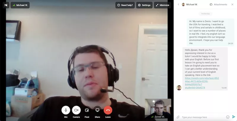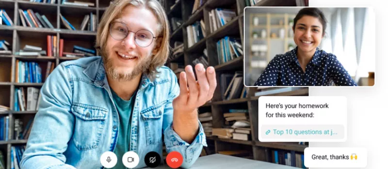 Преподаватель свяжется с вами по видеосвязи. Вы будете говорить на иностранном языке с носителем