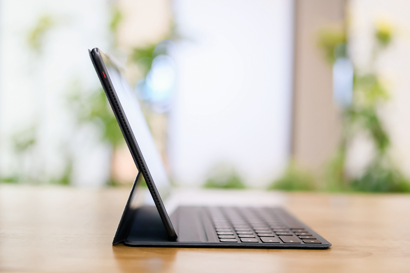 Еще один аксессуар для планшета — съемная клавиатура Huawei Smart Magnetic Keyboard. Она оснащается надежным магнитным креплением, беспроводной зарядкой и подключение по Bluetooth. Аксессуар выполняет две роли — клавиатура и подставка. Первая дает пользовательский опыт ноутбука и позволяет набирать текст почти в любой локации, а не только стационарно, со второй также можно смотреть кино, пока устройство находится в удобном для глаз положении.