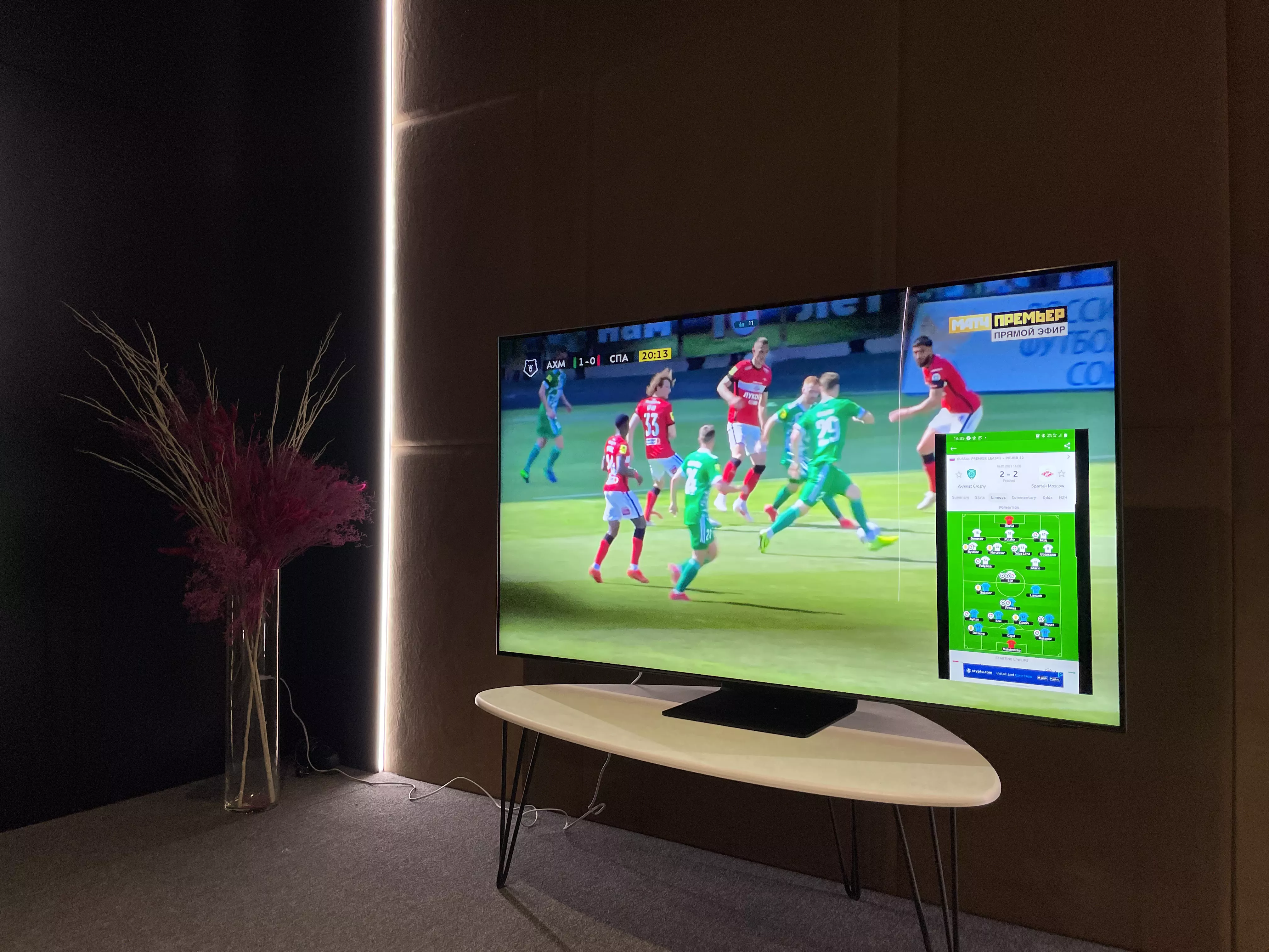 Интересная технология MultiView. С ее помощью можно выводить на экран телевизора изображение с дисплея телефона, одновременно транслируя другой контент. Она усовершенствована — теперь можно отображать картинку с дисплея телефона в режиме «картинка в картинке» — основной контент во весь экран, изображение со смартфона в окне.