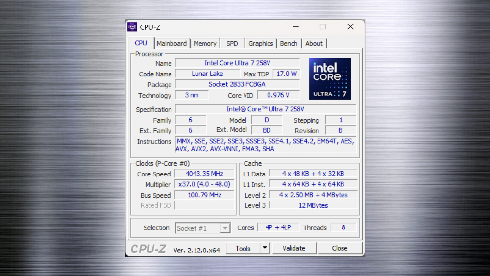 • Процессор: Intel Core Ultra 7 258V (4,8 ГГц, 8 ядер, 8 потоков);