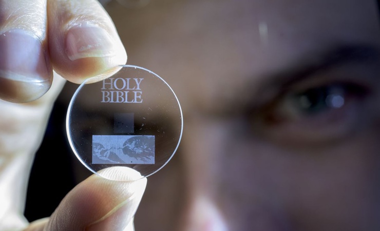 Команда исследователей университета при научно-исследовательском центре оптоэлектроники Southampton предлагает использовать для хранения данных стеклянные диски, внутри которых запись информации происходит в пяти измерениях благодаря использованию специальной наноструктуры. Разработчики уже создали работающий прототип, размер с монетку, в котором может храниться до 360 ТБ данных. Что важно, диск способен выдерживать экстремальные перепады температур, например нагрев до 190 градусов Цельсия. Кроме того, специальная структура стекла защищает от ударов и царапин, так что данные на дисках могут храниться миллиарды лет.