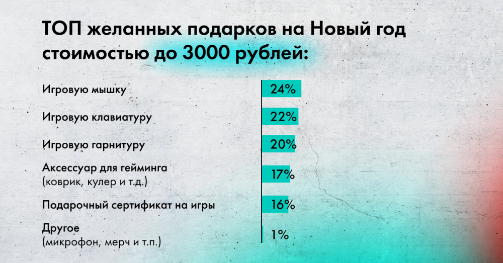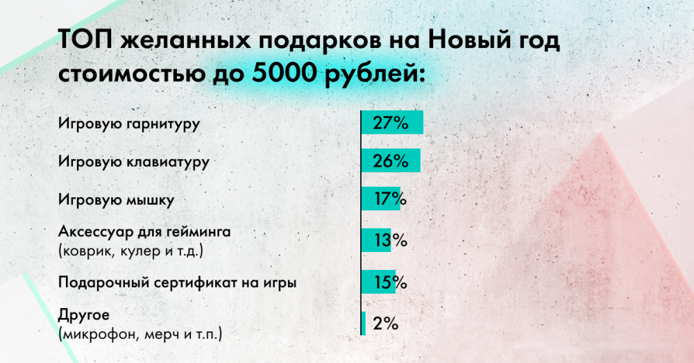 - Аксессуар для гейминга (коврик или кулер — их выбирают 30% геймеров);