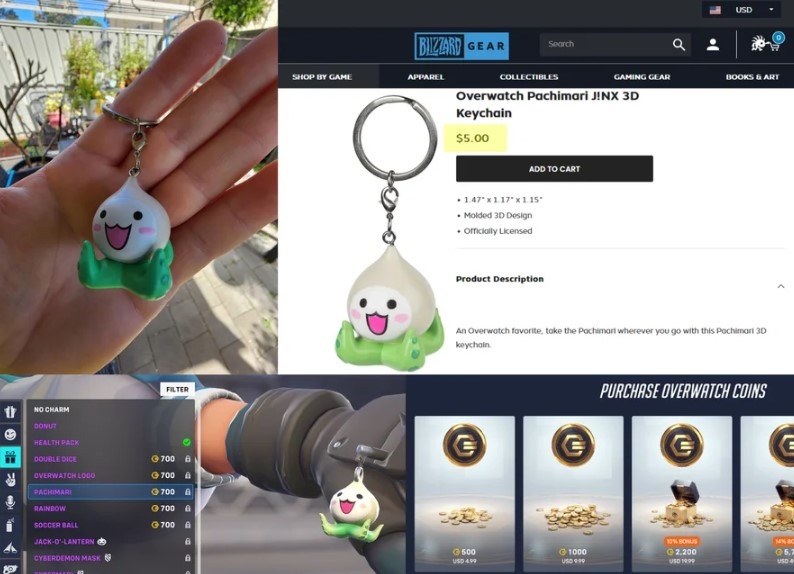 Покупка была совершена в официальном магазине Blizzard за 5 долларов. Затем автор поста решил приобрести аналогичный брелок в самой Overwatch 2. Виртуальная фигурка стоит 700 монет, однако пополнить счет аккаунта можно только на 500 или 1000. Пополнение на 1000 монет стоит 10 долларов, что обходится на 5 долларов дороже, чем в реальной жизни. В комментариях к посту шутят, что теперь Blizzard повысит цены и на товары из своего магазина с аксессуарами.