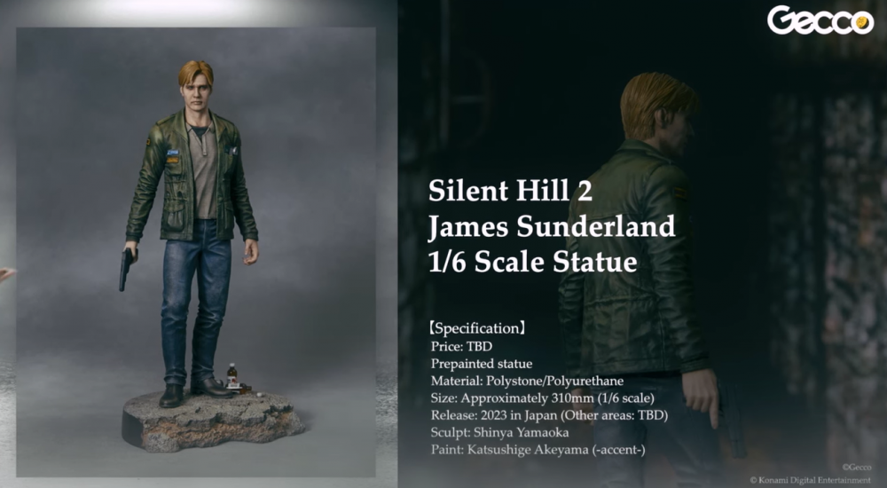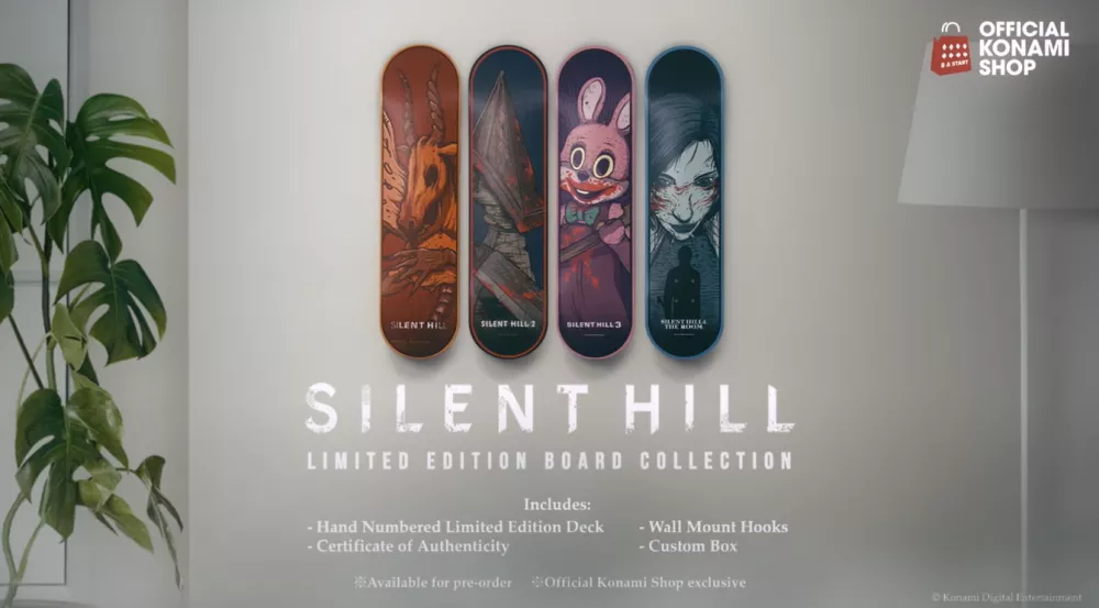 Konami не упустила возможность и прорекламировала фирменный мерч. Персонажи игровой вселенной украсили носки скейтбордов, а на основе ремейка Silent Hill 2 будут выпущены фигурки и диорамы с персонажами.