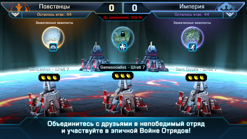 Одной из самых интересных активностей стало взаимодействие с другими игроками, причем не просто сражения один на один, но также возможность объединяться в могущественные отряды. Развитие гильдий и связанные с ними активности были представлены еще в майском обновлении «Звездные Войны. Вторжение». Например, появилась специальная локация для гильдейских противостояний, за победы в которых игроки получают дополнительные ресурсы, а теперь еще и повышают репутацию для дальнейшего развития. Очередное обновление продолжает линию популяризации и распространения гильдий. Они станут еще лучше, а участие в них — интересней. Теперь игроки смогут улучшать и кастомизировать отряды для усиления всех участников команды.