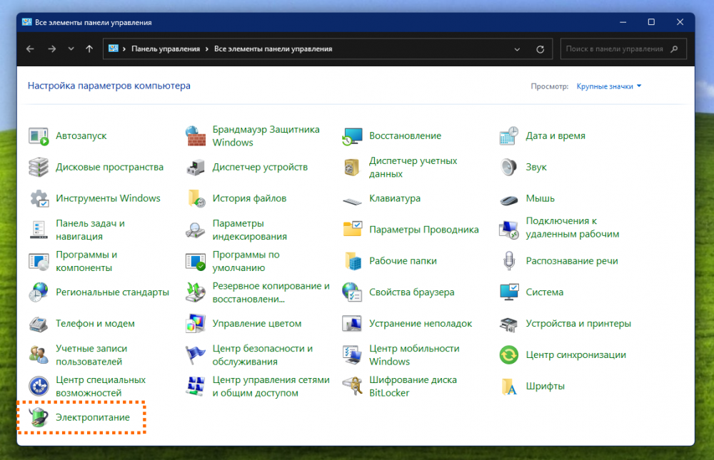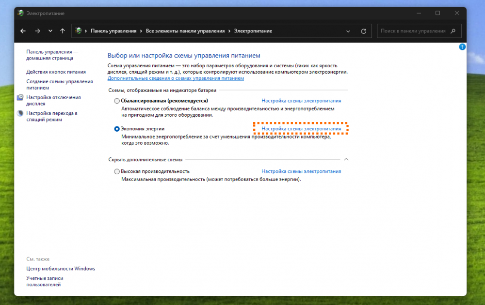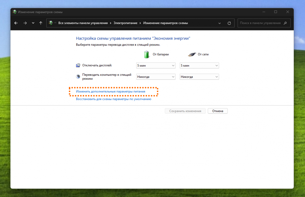 Каждую из схем питания можно гибко настроить — например, указать, нужно ли вам, чтобы монитор отключался и через какое время бездействия это должно происходить, или выбрать максимальную производительность процессора. Для этого нажмите на строку поиска в меню «Пуск» или на панели задач, напишите «Панель управления», запустите найденную утилиту и перейдите в раздел «Электропитание». Далее нажмите «Настройка схемы электропитания», а затем «Изменить дополнительные параметры питания» и в открывшемся окне настройте схему (например, можно уменьшить максимальное состояние процессора, чтобы компьютер работал ещё экономичнее).