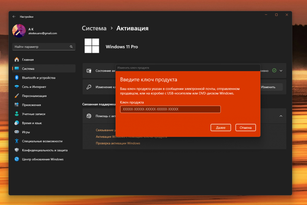 Ключ продукта: купите розничную или OEM-лицензию и введите ключ в «Параметры» > «Система» > «Активация» > «Изменить ключ продукта».