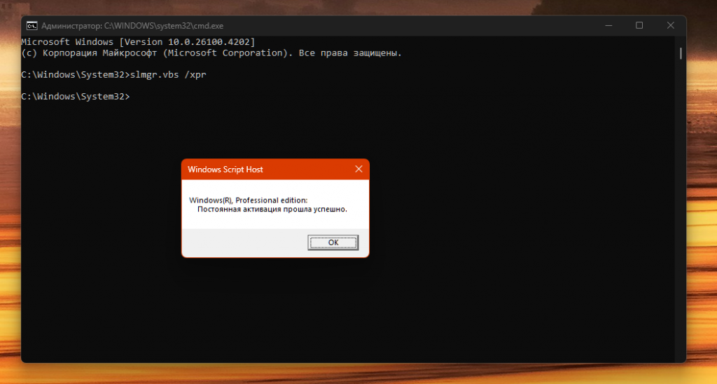 Этот метод полезен, если активация через графический интерфейс не сработала, или для управления корпоративными (KMS/MAK) ключами.