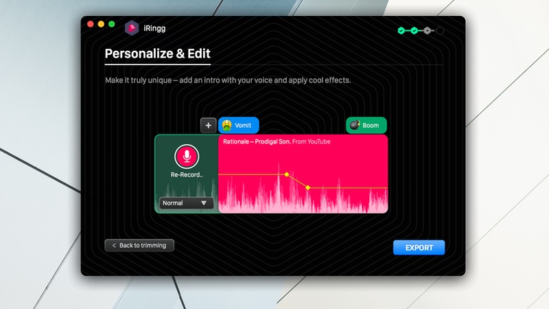 Приложение iRingg позволяет максимально быстро и удобно создавать и передавать на iPhone мелодии звонка. Найти нужный трек, правильно его обрезать и отправить на смартфон — все это занимает не больше минуты. Пользователи могут выбирать треки из своей медиатеки iTunes, искать композиции в Apple Music, SoundCloud и даже музыку на YouTube. Определившись с композицией ее нужно выбрать — и приложение автоматически предложить наиболее подходящий фрагмент нужной продолжительности. При желании выбор по умолчанию можно изменить, выбрав другую часть композиции или сократив длительность. После этого остается только нажать кнопку передачи – и новый рингтон станет доступен на iPhone.