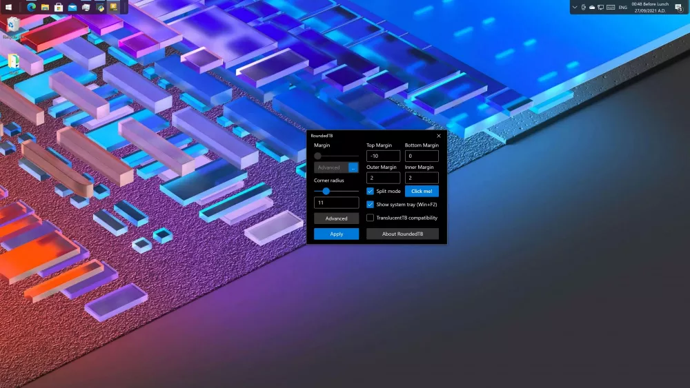 Windows 10 не позволяет гибко кастомизировать панель задач, вы можете лишь переместить её с нижней части экрана вверх или в бок экрана, уменьшить или увеличить значки, изменить её размер, закрепить или скрыть. В Windows 11 ограничения ещё более строгие — к примеру, не получится переместить панель, она может находиться только внизу. С помощью утилиты RoundedTB можно сделать гораздо больше и настроить эту панель так, как будет удобно лично вам.