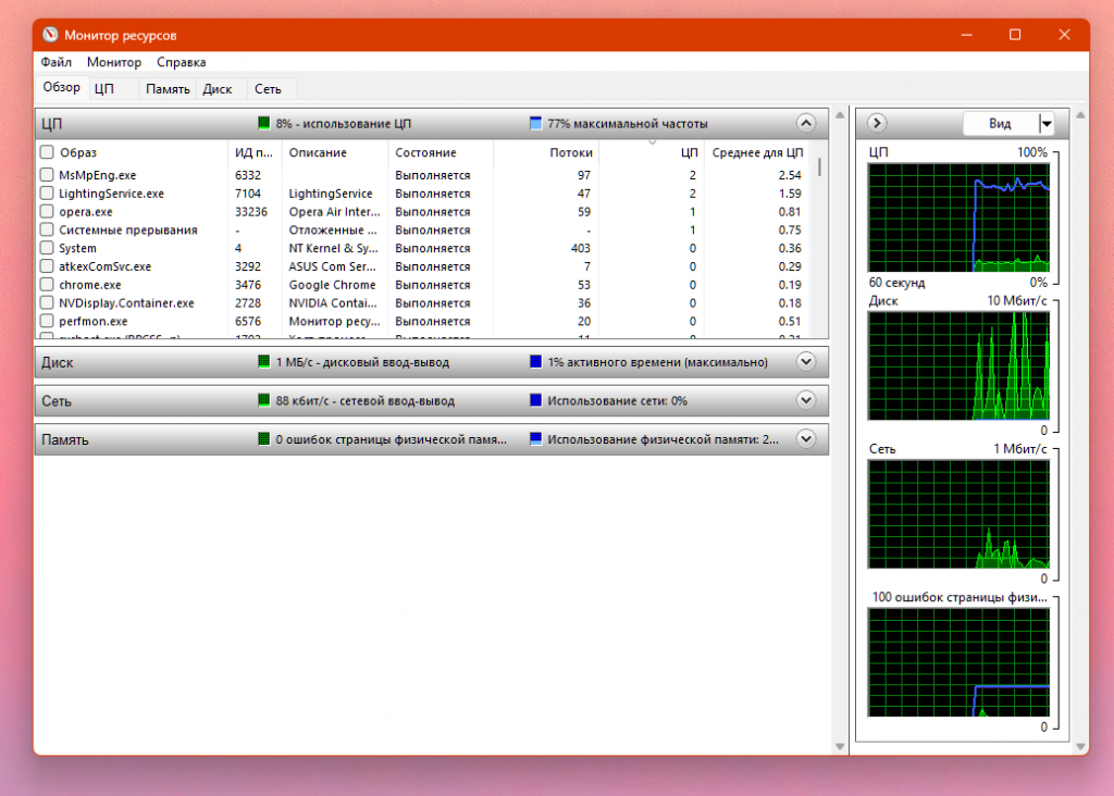 Нажмите Win + R, в открывшемся окне впишите команду resmon и нажмите Ок или Enter. Запустится «Монитор ресурсов». Отсортируйте задачи по уровню текущей нагрузки на центральный процессор (ЦП), а лучше — по средней нагрузке. Майнеры обычно сильно нагружают процессор, так их можно вычислить. Если есть сомнения, действительно ли подозрительный процесс является майнером, можно погуглить его название.