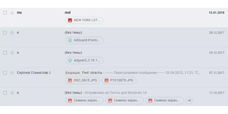 - Вы увидите все письма, в которые вложены файлы больше указанного объёма