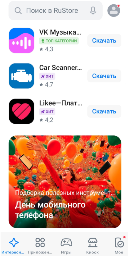 1. Откройте RuStore на смартфоне. Если у вас его нет — магазин можно установить с официального сайта rustore.ru.