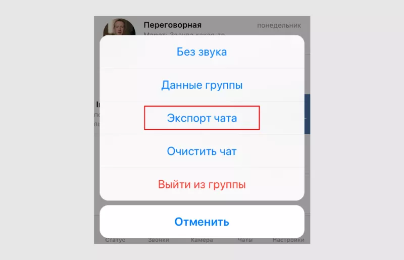 Откройте WhatsApp, найдите нужный чат, свайпните его влево, нажмите на меню «Ещё» и выберите опцию «Экспорт чата». Появится всплывающее окно для переноса данных, где есть в том числе Telegram — нажмите на значок этого мессенджера. В Telegram выберите контакт, в чат с которым будет перенесена переписка.