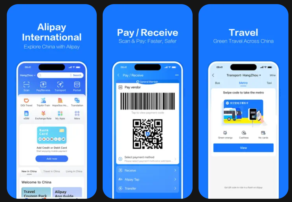 Основным и повсеместным способом оплаты в материковом Китае являются QR-коды. Для этого используются два главных приложения: AliPay (Android | iOS) и WeChat (Android | iOS). Лучший и самый надежный вариант — установить одно из них и привязать банковскую карту Visa или Mastercard, выпущенную не в России, а, например, в Казахстане, Таджикистане или Беларуси. В магазине вы просто открываете свой QR-код в приложении, кассир его сканирует, и вы подтверждаете платеж. AliPay и WeChat — это «супераппы», через которые также можно вызывать такси, заказывать еду и общаться.