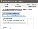 Для установки этой версии Skype на компьютер с Windows 10 требуется запустить инсталлятор в режиме совместимости с Windows 8. Как это сделать, читайте в нашей статье.