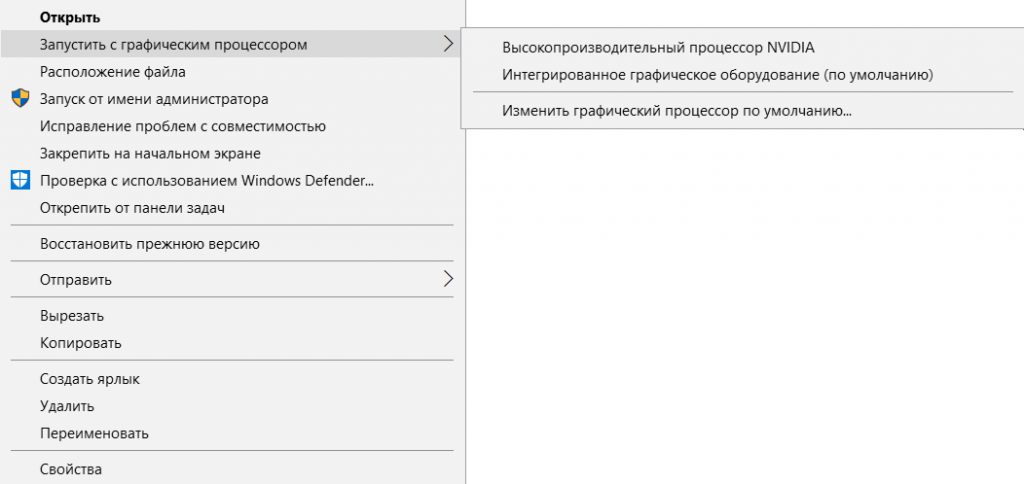 Если вы хотите запустить такую «кривую» программу только один раз, то можно нажать на нее правой кнопкой мыши и выбрать нужную видеокарту: