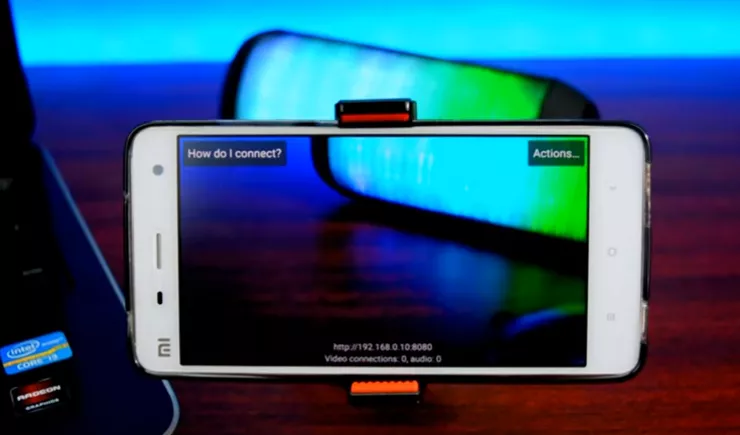 В приложении будет показан IP-адрес и номер порта, с которыми работает смартфон. Внесите эти данные в программу DroidCam Client. Укажите, что вы хотите захватывать (видео, звук или всё сразу) и нажмите Start. На смартфоне запустится камера, а изображение будет транслироваться на компьютере. Смотреть видео можно и в браузере, для этого нужно вбить в адресную строку тот же IP-адрес и порт, что вы указали в программе. В браузере можно удалённо включать и выключать вспышку смартфона, масштабировать и поворачивать изображение, менять разрешение видео, а также сохранять фотографии.