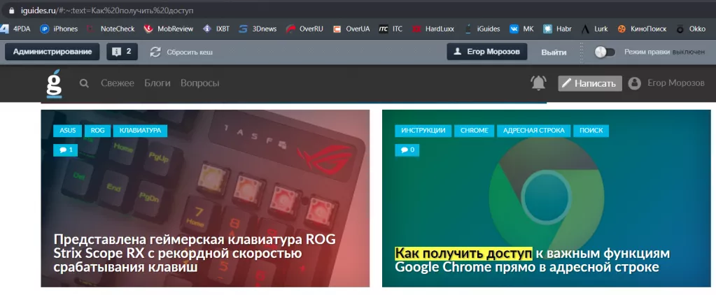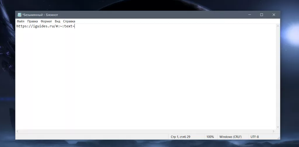 Если вы хотите поделиться этой ссылкой, то лучше всего копировать ее из адресной строки браузера, потому что последний заменяет пробелы на их символ %20. В противном случае, если вы скопируете ссылку из блокнота, она может обрезаться как-то так: https://iguides.ru/#:~:text=Как получить доступ.