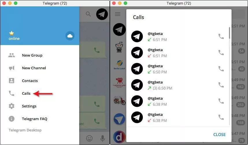 В меню Telegram появился новый раздел — Calls. Здесь представлена история звонков, а также присутствует интерфейс, позволяющий совершить голосовой вызов любому контакту. Как и в мобильной версии, удостовериться в шифровании звонка можно с помощью четырёх эмодзи, которые показываются как вызывающему, так и вызываемому абоненту. В приложении также можно указать, от кого вы можете принимать звонки: всех, только людей из списка контактов или ни от кого.