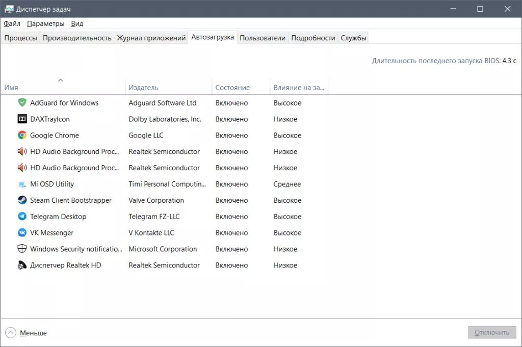 Автозагрузка — удобная функция: в нее можно добавить любые программы, которые нужны вам сразу же после старта ПК. Однако на Windows 10 она работает слегка необычно: запуск приложений из нее начинается приблизительно спустя 10 секунд после захода в систему. Эта фишка сделана для слабых устройств с HDD — если на них начать грузить одновременно и системные службы, и пользовательские программы, фризы и тормоза обеспечены.