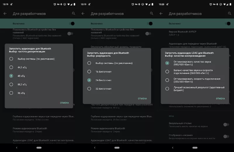 Многие считают, что качество звука в bluetooth-наушниках не улучшить — какие они есть, такие есть. Это не всегда так: в Android доступны настройки, позволяющие изменить используемый кодек, разрядность и ширину потока передаваемого на наушники аудиосигнала. Эти настройки находятся в разделе «Для разработчиков», который по умолчанию спрятан.