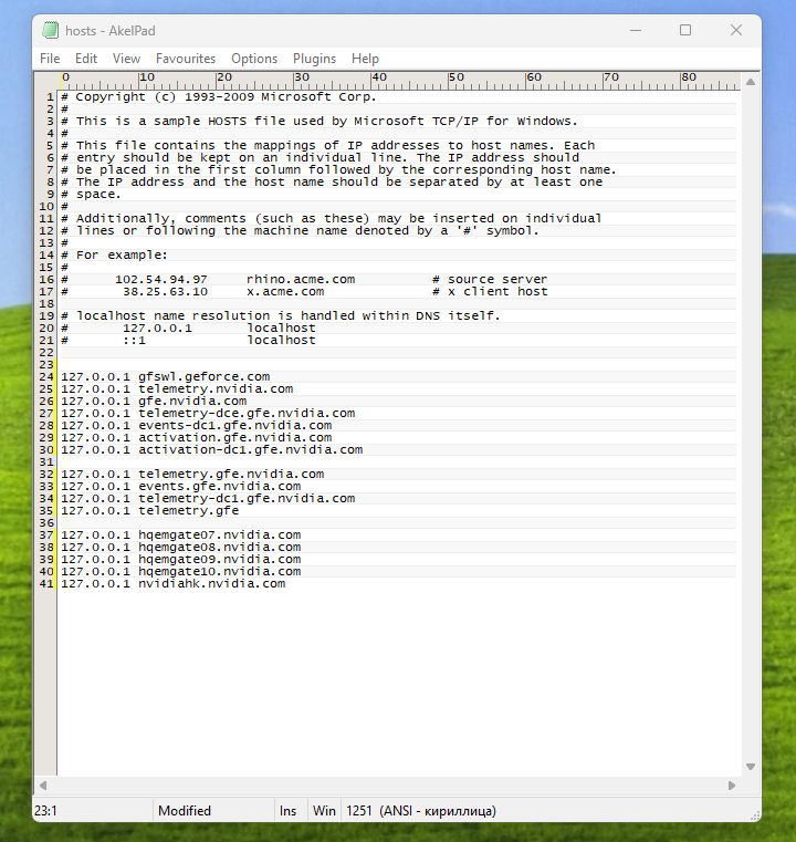Перейдите по этой ссылке на GitHub — здесь приводятся актуальные IP-адреса, через которые NVIDIA собирает телеметрию. Скопируйте их. Откройте в блокноте файл по адресу C:\Windows\System32\drivers\etc\hosts, добавьте в него скопированные адреса, вставьте 127.0.0.1 перед каждым адресом и сохраните. На сегодня это выглядит так: