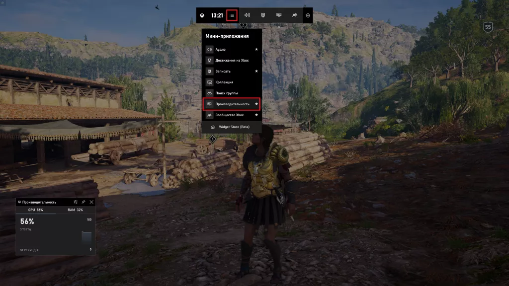 Все, после этого запустите нужную игру и нажмите в ней сочетание клавиш Win+G. После этого нажмите на значок мини-приложений и выберите там опцию «Производительность» (возможно, она сразу будет на оверлее и включать ее не придется):