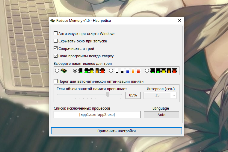 Спустя какое-то время оперативная память снова окажется переполнена. Вы можете повторно запустить утилиту Reduce Memory и выполнить чистку, а можно зайти в настройки и разрешить ей загружаться вместе с Windows и автоматически чистить память, когда занятый объём превышает установленное значение, или по временному интервалу (от 5 секунд до 10 минут). Когда свободной памяти больше, компьютер становится более производительным, а работать с ним приятнее, это неоспоримый факт.