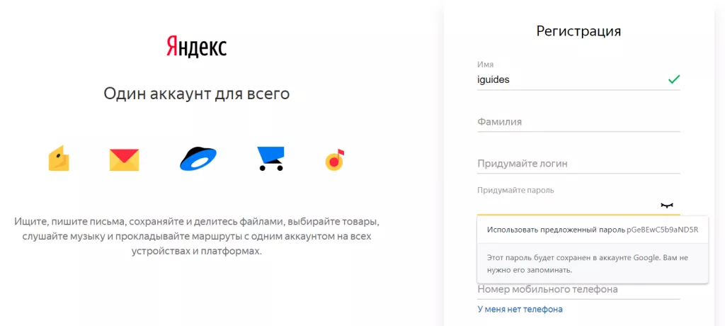 После этого достаточно перезапустить браузер, и теперь при наведении мыши на поле для ввода пароля при регистрации браузер предложит вам сложный пароль: