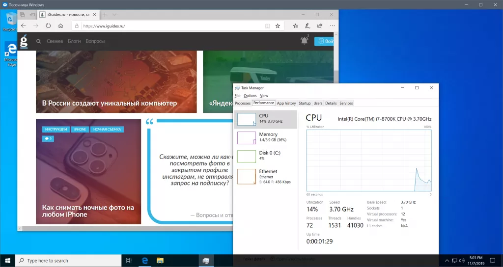В Windows 10 1903 появилась удобная Песочница. Что это такое? По своей сути это — виртуальная машина, которая работает на той же версии Windows, что и установлена на вашем ПК. Она не требует никаких сторонних утилит для работы и включается за пару минут. Зачем она нужна? Вы можете проверять на ней то, что не рискнули бы запускать на рабочей системе: различные приложения, сомнительные файлы и так далее. Да и по сути с ней можно делать все тоже самое, что и с любой другой виртуальной машиной с Windows 10.