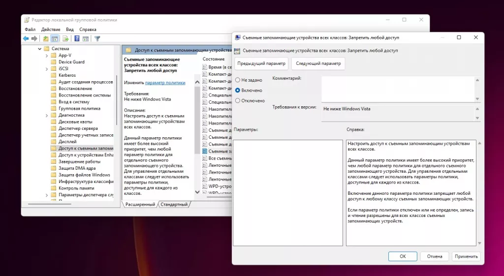Перезагружать компьютер не требуется, а если какой-либо накопитель уже был подключен, то запрет вступит для него в силу при попытке повторного подключения. Убрать запрет на использование внешних накопителей можно там же — в «Редакторе локальной групповой политики».