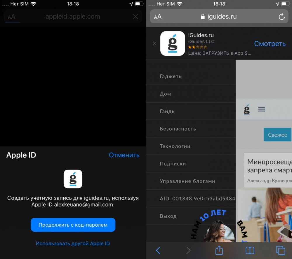 Как создать новую учётную запись на iguides.ru с помощью Apple ID: