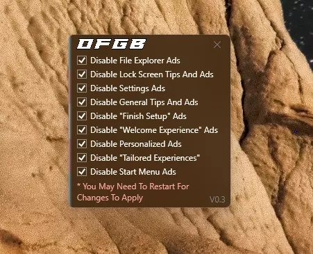 Утилита OFGB распространяется бесплатно, она выложена на GitHub, там же опубликован исходный код, написанный на языке C#. По словам разработчика, она просто вносит в реестр операционной системы изменения, вырезающие рекламу. То же самое можно сделать вручную, но для этого нужно обладать продвинутыми навыками и знаниями, а OFGB убирает рекламу всего в несколько кликов. Перед установкой OFGB требуется скачать и установить .NET 8.0 Desktop Runtime.